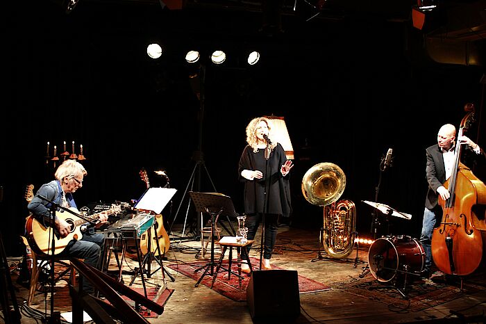 „Nur wenige Dinge erfüllen auf so einfache Weise mit Glück, sind derart präsent und haben einen so großen Einfluss aufs Leben wie die Musik", glaubt Claudia Sommer. Was sie damit meinte, zeigte sich schon beim ersten Song „Don't wait to long“ - eine lässig-beschwingte Coverversion eines Lieds der amerikanischen Jazzsängerin Madeleine Peyroux. Danach schnallte sich Klaus Reichardt seine E-Gitarre um und leitete begeleitet von Kontrabassspieler Karsten Gnettner das Stück „Shy Boy" ein. Claudia Sommer sang es etwas zurückhaltender als die Originalinterpretin Katie Melua. Später griffen Gnettner und Reichardt auch mal zur Tuba und Ukulele. Mit dem rockigen Beatles-Hit „Ticket to ride" und dem Foreigner-Gassenhauer „Urgent" nahm das Trio schließlich richtig Fahrt auf.