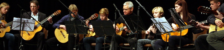 Vom Blechklang ging es direkt hinein in die sanfte Musik der Streicher von Joseph Vorbuchner. Sie spielten das klassischen Stück „Largo – non presto“ von Carlo Ricciotti. Wieder zurück in die Moderne mit den Akustikgitarristen von Rainer Krüger, die sich hochkonzentriert ans „Last Chrismas“ und „Jingle Bells Rock“ wagten. Dann wieder kurze Umbaupause, schnelles Notenständerschieben und weiter ging’s mit geistlicher Musik vom Kammerchor der Erwachsenen um Christian Preißler. Das reine Damen-Ensemble sucht dringend männliche Verstärkung mit Bassstimmen.