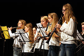 Schneller Notenständeraufbau und die Bläserklasse der Wolfratshauser Realschule positionierte sich um Musiklehrer Andreas Schöbinger. Sie spielten insgesamt vier Stücke, darunter den „Mohrentanz“ aus dem 16. Jahrhundert von Tylman Susato und den amerikanischen Evergreen „When The Saints Go Marching In“. Mit der Realschule habe die Musikschule eine Kooperation, erklärte Musikschulleiter Manfred Heller, der als Moderator während der Umbaupausen immer ein paar nette Worte übrig hatte. „Wir sind für den Instrumentalunterricht zuständig“.
