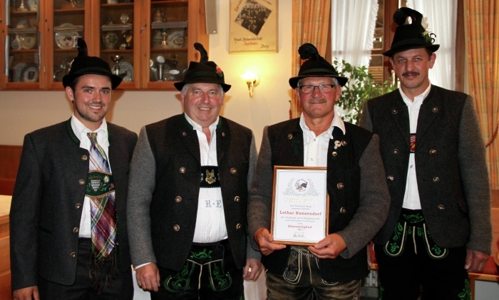 Beim Stroblwirt wurde gefeiert und über vergangene Zeiten geratscht und gelacht. So erzählte Beppo Bierling über ganz besondere Ereignisse als Jungmusiker beim Zehnjährigen, die Penzberger Huaterer überreichten ein Fassl Bier als Gastgeschenk und im Namen der Gemeinde überreichte Bürgermeister Thomas Feistl eine Geldspende. Am Nachmittag freute sich Vorstand Edenhofer zwei Huaterer, Lothar Kunzendorf und Sepp Feldl, der gesundheitlich verhindert war, die goldene Ehrenmitgliedsnadel für 50 Jahre Vereinszugehörigkeit verleihen zu können. Zudem wurde die silberne Ehrennadel an Richard Echtler für 25 Jahre Mitglied in der Vorstandschaft überreicht.