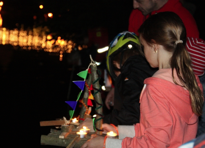 Auf dem ersten Floß mutete ehrwürdig im Schein eines Lichtkegels die Statue des Schutzpatrons Johannes Nepomuk an, umgeben von den Angehörigen der Flößerfamilien. Das zweite Floß beförderte die Ehrengäste, darunter Bürgermeister Klaus Heilinglechner, die Stadträte und der ehemalige Bayrische Ministerpräsident Edmund Stoiber. Nach einem Gottesdienst und den Segen durch die Stadtpfarrer legten die Flöße wieder ab. Danach durften die Kinder ihre selbstgebastelten und mit Teelichtern beleuchtete Floßmodelle zu Wasser lassen – ein ganz besonderer Moment auf den alle Zuschauer gewartet hatten. Für ihre Sicherheit sorgten am Ufer Mitglieder der DLRG. Mit viel Liebe zum Detail hatten die Kinder ihre kleinen Flöße gebaut. Die einen sahen aus wie Segelschiffchen, andere wie Miniaturflöße aus Ästen gebunden, manche waren mit bunten Lampions bestückt. Eines kam wie ein Fliegenpilz daher, ein anderes hätte eher in einen Piratenfilm gepasst – das ist die wunderbare Phantasie der Kinder. Immer mehr kleine Schiffchen leuchteten auf dem Flussabschnitt. Für Gabriele Rüth, der Vorsitzenden des Vereins „Flößerstraße“ ist das ein sehr wichtiger Teil dieser Prozession. „So bewahren wir bei unseren Kindern Tradition und Brauchtum.“