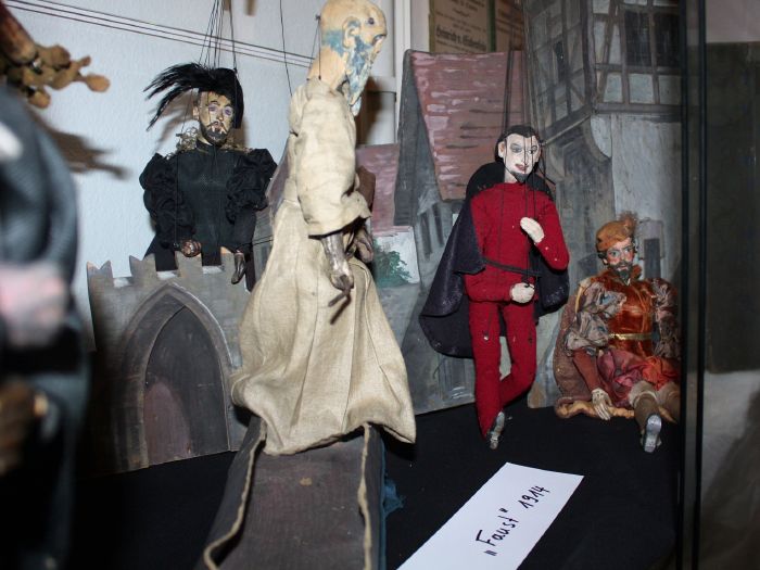 Die aktuelle Ausstellung zeigt zudem eine Zeitdokumentation aus einer Kulissendarstellung mit Puppen aus dem Bühnenstück Goethes Faust, sowie Theaterplakate von 1914, dem ersten Spieljahr. Was habe der Kasperl eigentlich in Goethes Faust verloren, auch das wollte man von wollte Kuratorin Heuberger wissen. „Er war der Hofnarr, er brachte während der Opern die Belustigung ins Publikum.“ Viele Jahre sei der Kasperl dann aus den Opern verdrängt worden. „Er war wohl nicht mehr zeitgemäß“, mutmaßte Heuberger. Nun ist er wieder da und sein Arbeitgeber, das Salzburger Marionettentheater, wird zum Ende des Monats von der Münsinger Pocci-Gesellschaft mit dem diesjährigen Pocci-Preis geehrt.