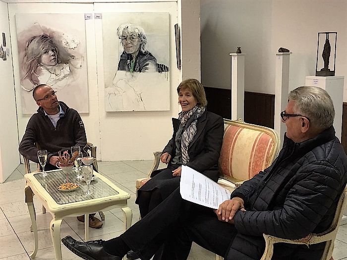 Geretsried, 7.10.2016 – "Warum wird man Künstler? Wie findet man seine Richtung? Woran denkt ein Künstler beim Malen?" Dies und vieles andere wollte Hannes Kirchhofer von den beiden Malern Elisabeth Biron von Curland und Michael Dillmann beim Künstlergespräch in der Villa Bunterkunst wissen. Im Rahmen des Kulturherbstes hatte der Kulturverein Isar-Loisach (KIL) am Donnerstagabend dazu in die Räume an der Jahnstraße 4 eingeladen.