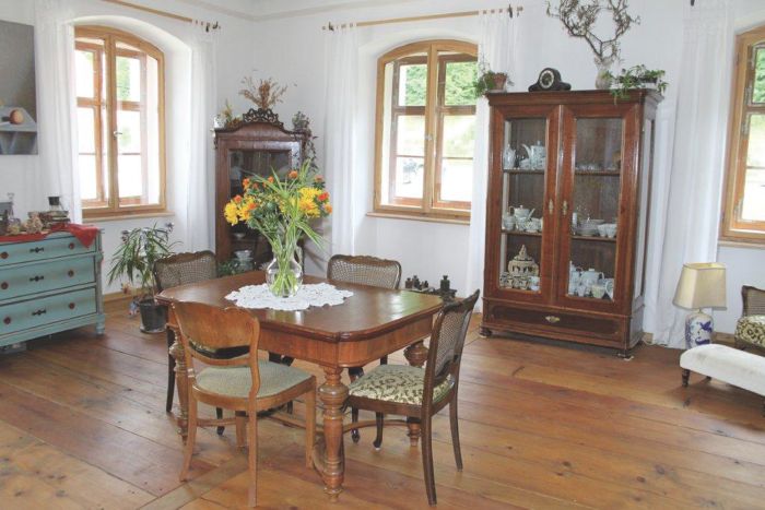 Doch dann geschah das Unfassbare: Zehn Tage nach dem Kauf brannte das Schloss durch einen Kabelschwelbrand bis auf die Grundmauern nieder. Merl und Frank ließen sich nicht entmutigen, lebten knapp ein Jahr im Bauwagen und rekonstruierten das historische Anwesen mit Putzbändern und schwarzen Eck-Quadern. Sie fingen mit der Dachsanierung an und arbeiteten sich über einen Zeitraum von drei Jahren Raum für Raum bis zum Erdgeschoss hinab. Bis auf die finanzielle Unterstützung aus dem Entschädigungsfond des Bayerischen Landesamts für Denkmalpflege investierten sie ihr eigenes Kapital und viele Stunden Freizeit. Warum sie sich diese Mühe auferlegen, darauf haben sie nur eine Antwort parat: „Wir lieben unser Schloss.“