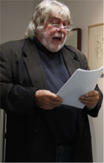 Die beiden schlüpften in die Rollen der „absurden Gestalten“ und Volker Witte wisperte einmal mit mausspitzer Stimme oder brummelte ein anderes Mal tief und bärig. Der Respekt gebührte auch Eva Mause, die mit ihren 78 Jahren, humoristisch die Stimmen ihrer Phantasiewesen imitierte. „Ich bin sehr beeindruckt von Ihnen, Frau Mause. So etwas hätte ich heute nicht erwartet“, lobte Hasreiter das Zwiegespräch der beiden.
