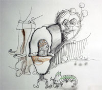 „In einem Haus, wo geheilt, gelitten und gestorben wird, muss es auch Zeit und Gelegenheit zum Schmunzeln geben“, begrüßte Dr. Stefan Schmidbauer, der ärztliche Direktor und Chefarzt der Chirurgischen Abteilung der Kreisklinik Wolfratshausen die Gäste zur Vernissage von Eva Mause. Die Ausstellung, die noch bis 15. Januar zu sehen ist, zeigt zwanzig Zeichnungen von niedlichen und zugleich surrealistischen Wesen. Gerhard Hasreiter, 1. Vorsitzender der „Freunde der Kreisklinik e.V.“, die die Kunstausstellungen in der Klinik initiieren, war überrascht, was er und die Gäste zu sehen und zu hören bekamen. Denn Eva Mause schreibt zu ihren Bildern humorvolle und hintergründige Texte und trug diese gemeinsam mit Volker Witte in Zwiegesprächen vor.