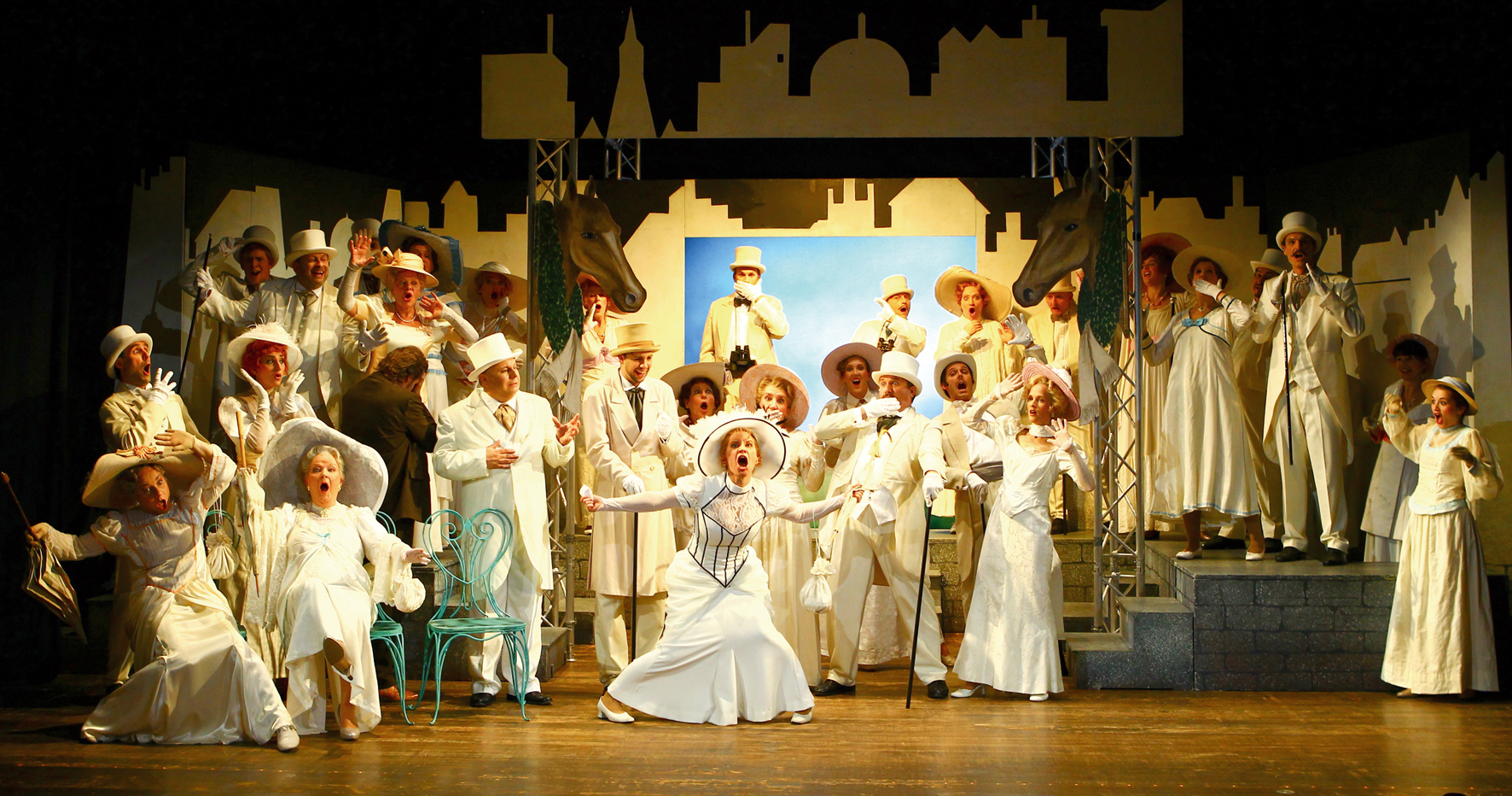„My Fair Lady“ ist eines der meistgespielten Musicals im deutschsprachigen Europa und ein Synonym für das klassische Musical an sich. Als literarische Vorlage diente dem Autor Alan Jay Lerner die humorvoll bissige Komödie „Pygmalion“ des englischen Nobelpreisträgers George Bernard Shaw (1856‐1950), der hier auf einen Stoff der griechischen Mythologie zurückgriff. Aus dem Bildhauer wurde bei Shaw der zerstreute Professor Higgins (Harald Wurmsdobler), Spezialist für Dialekte, der dem schmutzigen und ungebildeten Blumenmädchen Eliza Sprache und Manieren der höheren Gesellschaft einpauken muss, um eine Wette zu gewinnen. Ein ideales Stück für das Freie Landestheater Bayern, das die Auseinandersetzung mit der Mundart immer wieder erfolgreich ins Zentrum seines künstlerischen Interesses stellt. Es versteht sich von selbst, dass die „Fair Lady“ (Monika Lachenmeir) am Freien Landestheater Bayern auf bairisch konversiert, nicht immer ganz zur Freude ihres Lehrmeisters, aber dafür um so mehr zum schenkelklopfenden Vergnügen des Publikums.