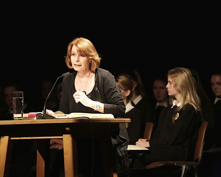 Doch natürlich lag der Fokus vor allem auf der Lesung der Schauspielerin und Rezitatorin Senta Berger. Vor fast vollem Haus trat Berger ganz umprätentiös auf die Bühne, nahm an einem kleinen Tischlein Platz und begann zu lesen. Und wie sie las: Sofort zog sie die Zuschauer mit ihrer Ausstrahlung, ihrem Charme in ihren Bann. Aus den Prosatexten machte Berger zudem fast kleine Theaterstücke. Manchmal mit verschmitzter, erzählender Distanz, mal in empathischem oder kraftvollem Duktus ließ die Schauspielerin mit der markant-angenehmen Stimme die Geschichten und Personen lebendig werden. Die von ihr so einfühlsam vorgetragenen Weihnachtsgeschichten brachten das Auditorium dabei ebenso zum Schmunzeln wie zum Nachdenken. Und sie berührten, die Geschichten wie „Noch einmal ein Weihnachtsfest“ von Theodor Fontane, „Maria schreibt Elisabeth“ von Rudolf Hagelstange oder „Der eigensüchtige Riese“ von Oscar Wilde.