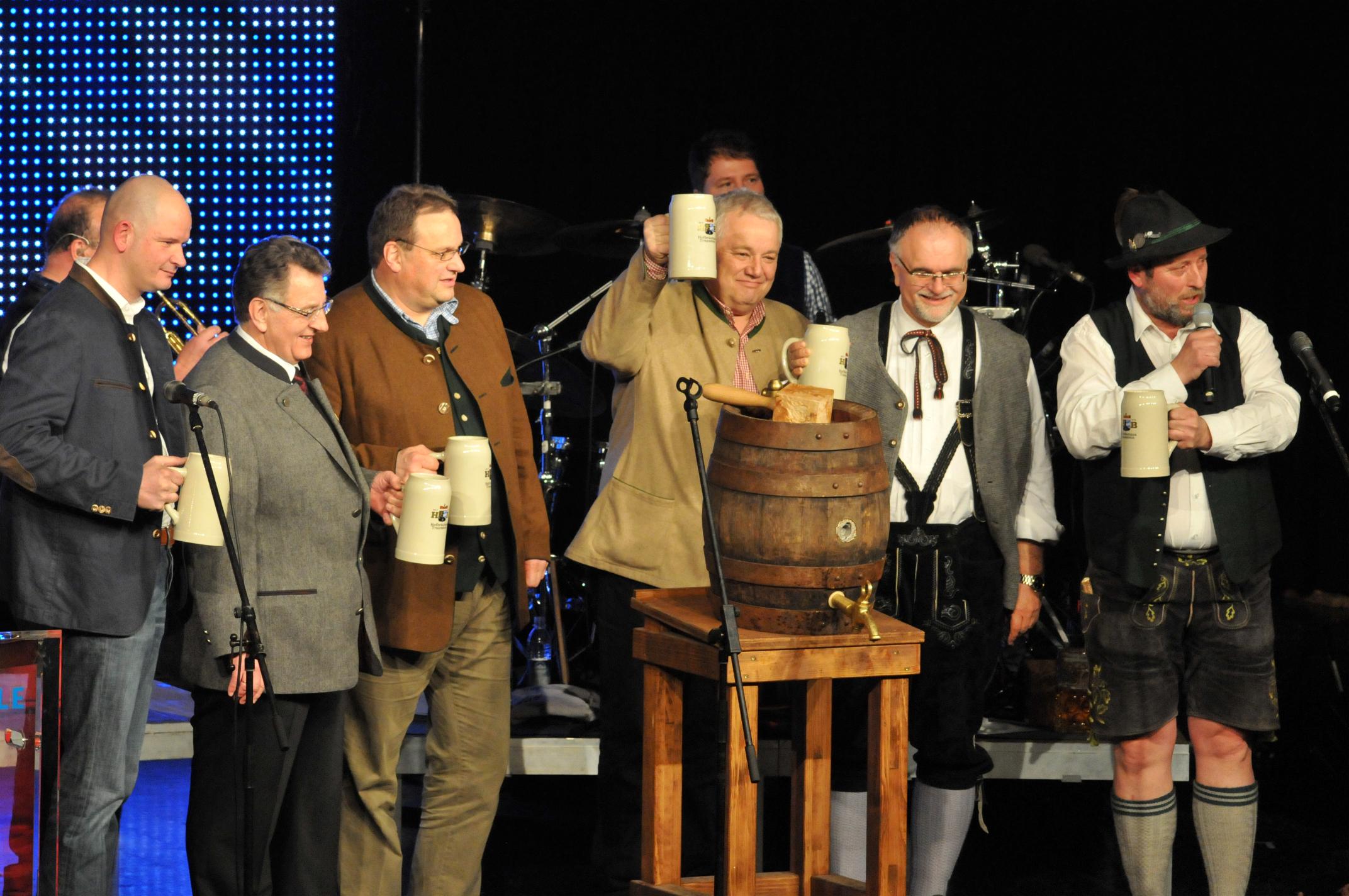 Wolfratshausen, 10.3.2014 – Der Gerstensaft floss, die Lachtränen kullerten, nachdem sich der Vorhang zum diesjährigen Singspiel gehoben hatte. Ein aberwitziges Spektakel, so süffig wie das Bier, begeisterte dabei das Volk in der restlos ausverkauften Wolfratshauser Loisachhalle. Die Darsteller und Macher des Wolfratshauser Starkbieranstiches, die Loisachtaler Bauernbühne, punktete dabei mit herrlichen Persiflagen und spitzer, scharfzüngiger Satire, ohne dabei die Häupter der Kommunalpolitik zu schonen.