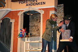 Wirtschaftsreferent Helmut Forster (Wiggerl Gollwitzer) und CSU-Stadtrat Günther Eibl (Felix Unterberger) rührten die Werbetrommel für den am Untermarkt 10 geplanten Andenkenladen. Dort war eigentlich ein Bürgerladen geplant. Doch das Lieblingsprojekt von Bürgermeister Klaus Heilinglechner (Andi Wastian) scheiterte auch an den „Umfallern“ in seiner eigenen Partei, die es am nötigen Rückhalt vermissen ließen. Grund genug für Werbekreis-Vorsitzende Ingrid Schnaller (Christine Brauner) Helmut Forster zu gratulieren: „Schön, dass es doch noch geklappt hat mit deinem Andenkenlädchen. Auch wenn du dafür erst noch die Bürgerladentruppe sabotieren musstest“. Dass er bei geschätzten 639.000 Tagesgästen im Jahr noch kein einziges Andenken verkauft hat, scheint da nicht weiter zu stören. Neben verzierten Aschenbechern und einem Isarkaufhaus-Sparschwein schleppte Forster einen schweren Stein der ehemaligen Wolfratshauser Burg in seinen Laden.