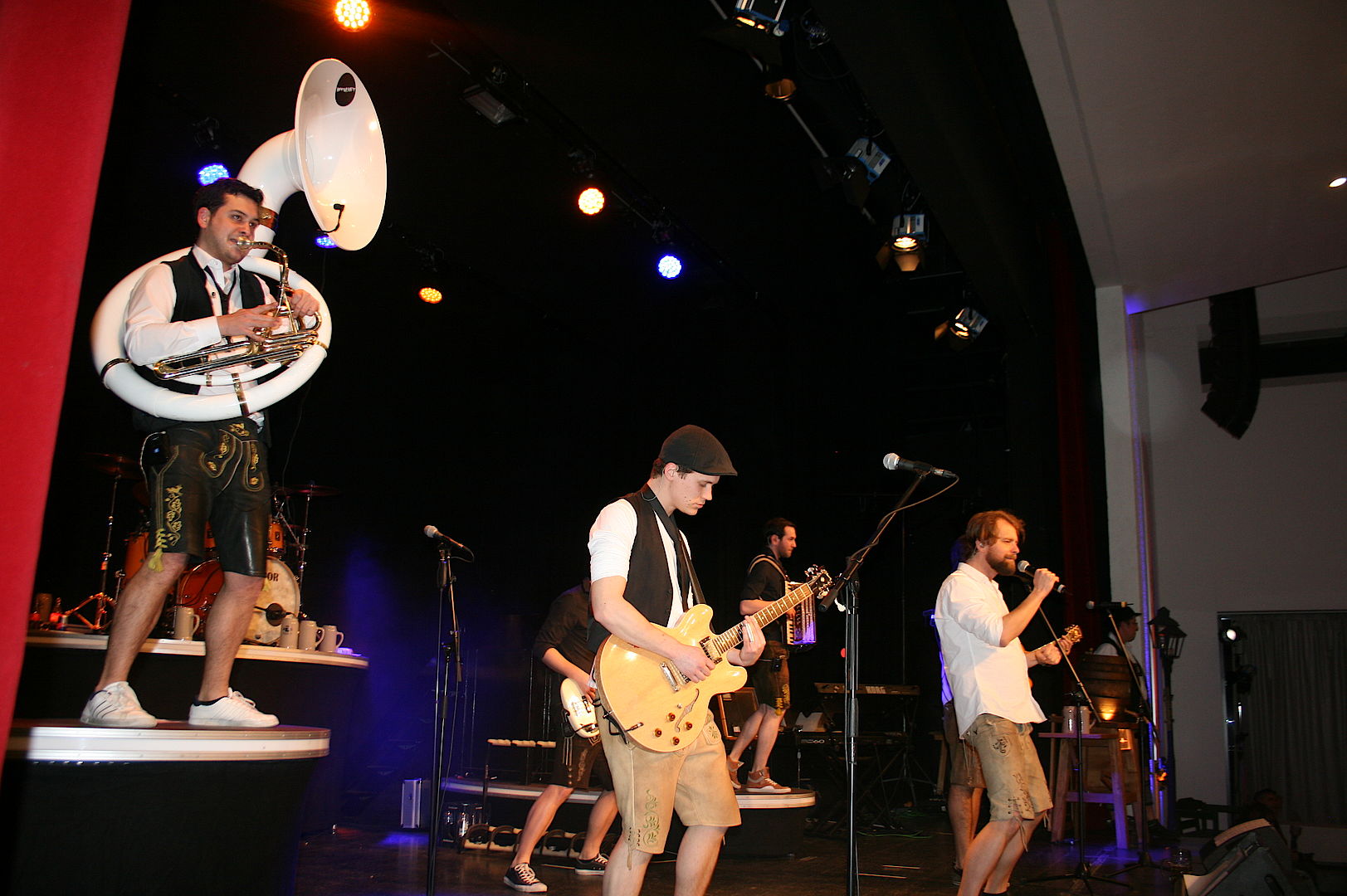 Wolfratshausen, 7.3.2016 – 588 Besucher amüsierten sich am Freitagabend in der ausverkauften Loisachhalle über die treffsicheren Pointen der Loisachtaler Bauernbühne. Nach dem Singspiel sorgte die Band Bergluft auf dem Starkbierfest für Wiesn-Atmosphäre.
