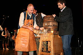 Bevor Klaus Heilinglechner sich die Lederschürze umband und zum Hammer griff, verriet Hofbräuhaus-Traunstein-Mitinhaber Maximilian Sailer, dass beim Brauen des Fastenbocks ausschließlich bayerische Rohstoffe verwendet wurden. „In den Brauereikellern ist er bis zur kräftigen Vollendung gereift. Wir verwenden natürlich auch kein Glyphosat“, erklärte Sailer. Heilinglechner zapfte das Fass schließlich mit drei Schlägen an. Dafür gab’s ebenso viel Applaus wie anschließend für die Musik von Bergluft, die unter anderem mit nachgespielten Liedern von STS, Rainhard Fendrich und der Steve Miller Band zu gefallen wussten.
