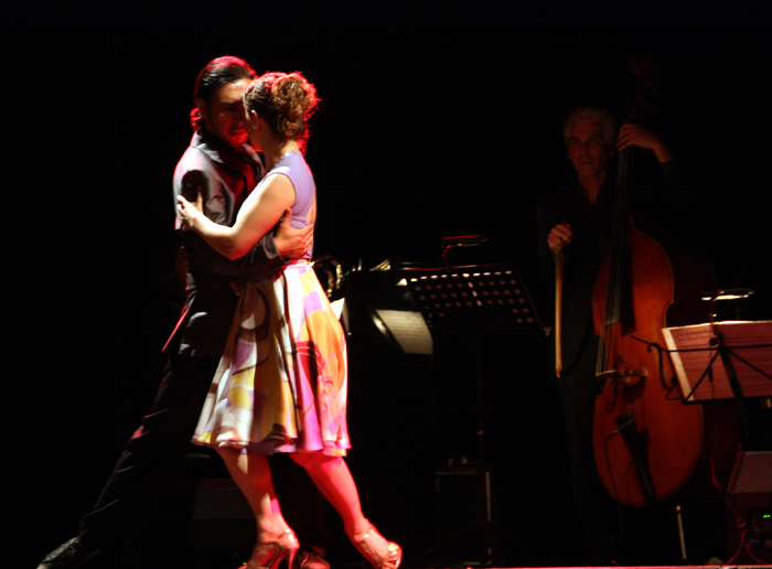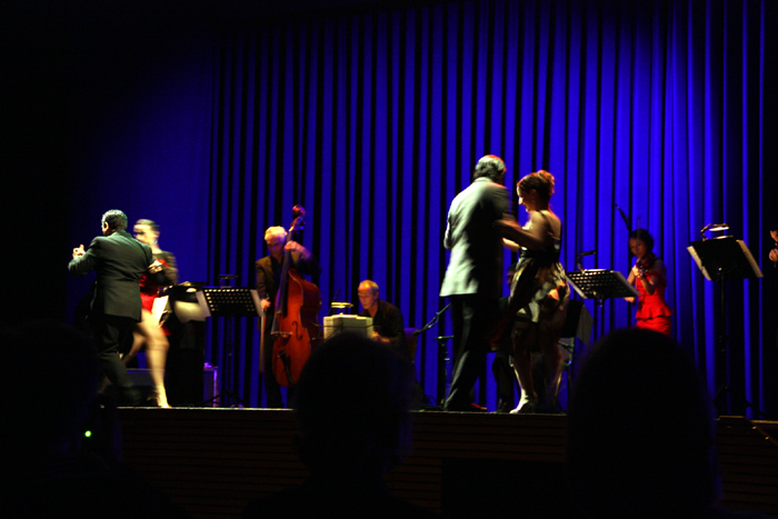 Die Idee zu diesem wunderbaren Tangofest in Wolfratshausen hatte die Münchnerin Sandra Egnolff, die seit Jahren in Almeria lebt und hier wie dort viele Freunde in der Szene hat. Gabi und Gustavo Gómez aus Geretsried erweiterte die ursprünglich rein konzertante Idee von Egnolff mit einer traditionellen Milonga und das Publikum lies sich nach ihrem anerkennenden Beifall für die Bühnenshow nicht lange bitten, um selbst das Tanzbein zu schwingen. Sie bewiesen, dass es auch im Oberland exzellente Tangotänzer gibt.
