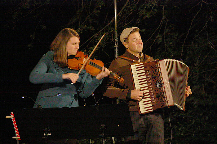 Doch wer sich nicht mit dicker Daunenjacke, Winterschuhen und Wolldecke ausstaffiert hatte, dem kroch spätestens nach der Pause die Nachtkühle in die Knochen. Hallo! Wir haben Hochsommer! Die Wärme kam aus der Musik. „Che Tango Che“ – Geschichten und Lieder über das Leben von Astor Piazzolla und seinen Wegbegleitern Horacio Ferrer und Carlos Gardel. Piazzolla revolutionierte den traditionellen Tango Argentino und entwickelte den Tango Nuevo.