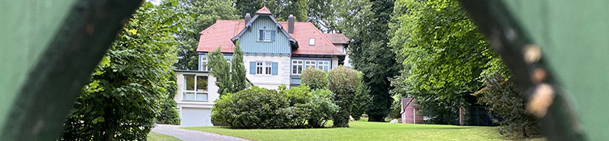 Die Seeseiten in Seeshaupt ist ein opulentes Schlösschen im Spätklassizismus mit weitläufigem Park. Katja Sebald beginnt das Porträt über dieses herrschaftliche Anwesen mit den Worten: „Wenn Höhenried der Gipfel des neureichen Bauens am Starnberger See war, dann ist Seeseiten der Kulminationspunkt des stilvollen Lebens am Land.“ Natürlich hat auch dieses Schlösschen hinter seiner auffallend quergestreiften Fassade eine lange Geschichte und zahlreiche Besitzer zu bieten. Jeder nutzte das Anwesen auf seine Art. So zum Beispiel Rudolf von Simolin, laut Sebald, ein Mann größter Bildung und Kulturverständnisses. Er war ein Kunstsammler, ein Liebhaber der Literatur und hatte „ein Faible für moderne Möbel der Vereinigten Werkstätten“, schreibt Sebald. Von Simolin war mit zahlreichen geachteten Kunstschaffenden befreundet, darunter auch Verleger Reinhard Piper und Dichter und Architekt Alexander Schröder. Der habe ihm „ein Arbeitszimmer mit dem schönen großen Bücherschrank entworfen, (…)“, weiß Sebald zu berichten.