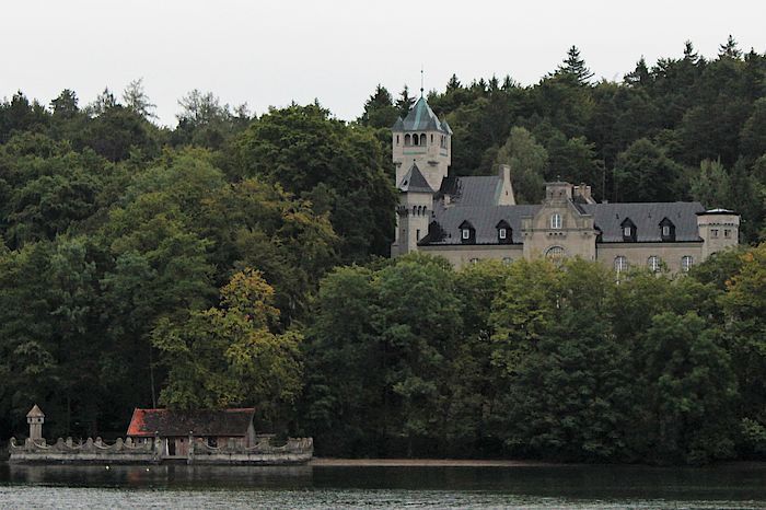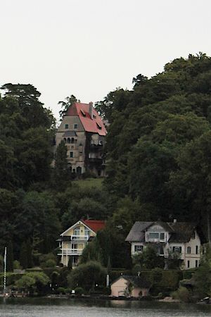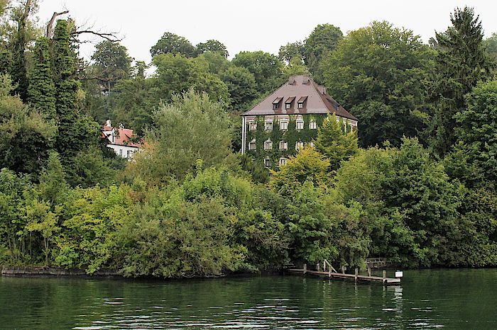 Vom Schiff aus kommt so manches Haus erst zur Geltung. Aus dieser Perspektive ist die dreigeschossige Künstlervilla Rösl mit Erkern, Loggien und Treppenhausturm erst in ihrer vollen Pracht zu sehen. Und einer der Gäste auf der MS Bayern erinnert sich sogar an ein Konzert in diesem Haus mit dem Pianisten Wilhelm Kempff (1895-1991).