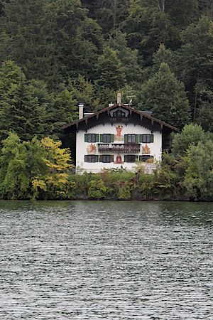 Kurz darauf taucht die nach dem Unternehmer Johann Ulrich Himbsel (1787-1860) benannte Villa mit einer der Lüftlmalerei nachempfundenen Fassade am Ufer auf. Der Bau-Tycoon eröffnete 1854 die Eisenbahnverbindung von München nach Starnberg. Zugleich nahm er den ersten Raddampfer am See in Betrieb. Für das Himbsel-Haus war der Typus des Bauernhauses Vorbild – zumindest nach außen. Im Inneren schmücken Wandmalereien der namhaften Münchner Maler wie Wilhelm von Kaulbach, Moritz von Schwind oder Karl Rottmann das Treppenhaus.