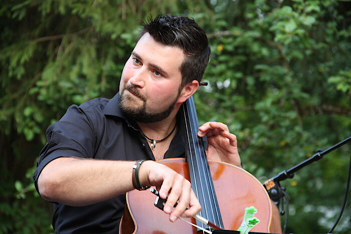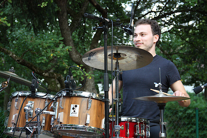 Manche Lieder erzählen von tiefer Verbundenheit – von der geliebten „Omama“. („Dich umarmen ohne Sorgen, wär‘ das Schönste auf der Welt, selbst wenn Dein Duft von Kölnisch Wasser ewig lang im Pulli hält.) Auch die Qual des Schönheitsideals gehört zum Thema Liebe. (Ich mach jetzt Detox, ich entgifte mal total.) Die Liedtexte wurden musikalisch getragen von einer ungewöhnlichen Besetzung: Van Kuhl am Piano, Nenad Uskokoviĉ am Violoncello. Der studierte Klassikmusiker spielt im „Weltenbrand-Orchester“ von Konstantin Wecker. Und der international geschätzte Jazz-Schlagzeuger Lorenzo Riessler, der sanft den Besen rühren kann, leise mit den Händen die Trommelfelle bedient, aber auch mal im Solo Rhythmusvariationen dem Publikum gehörig um die Ohren klingen ließ. Kurzum, das war musikalisch wie sprachlich ein hochkarätiger Hörgenuss, natürlich mit viel Liebe präsentiert.
