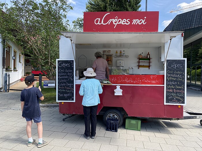 Am Sonntagnachmittag tritt das Quartett „Betty’n’Babes“ um Musikerin Betty Beindl auf (bekannt von der Folkrockband Tibetrea). Sonntag ab 16 Uhr kommt der Sirenenchor des Kulturvereins Isar Loisach mit Liedern aus seinem neuen Programm. Kunst und Genuss gehören zusammen. „Wir freuen uns sehr, dass heuer erstmals Senta Auth mit ihrer Kaffee-Ape kommt“, sagen die Organisatorinnen. Sie wird frischen Cappuccino und kleine Snacks in ihrer dreirädrigen „Vespa-Biene“ anbieten. Auch der Franzose Thierry Briat sorgt fürs leibliche Wohl der Besucher. Köstliche Crepes bereitet er in seinem feuerroten Anhänger zu. Zehn Prozent der Einnahmen spenden die Künstler an den Verein „Frauen helfen Frauen“.