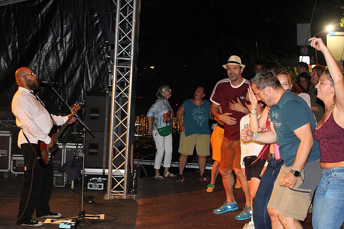 Wolfratshausen, 7.7.2025 – Sie gründeten sich vor 38 Jahren und spielten sich mit Ohrwürmern wie „Easy Day" oder „Come to sin" in die Herzen ihrer stetig wachsenden Fangemeinde. Kein Wunder also, dass der Fluss-Festival-Auftritt der Bananafishbones restlos ausverkauft war und es auf der Tanzfläche vor der Bühne heiß herging.