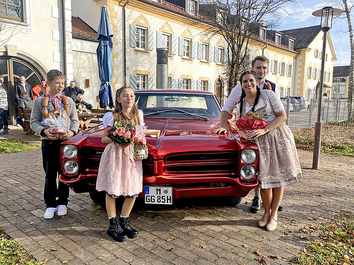 Adrett in Tracht und hübsch anzusehen präsentierten sich die Prinzenpaare - die erwachsenen „Hoheiten“ Nadja I. Tragnitz aus Geretsried und Christian II. Burger aus Peretshofen, und die Kinder-Tollitäten, Alisa Sturzu und Sebastian György aus Geretsried. Standesgemäß fuhren sie in einem riesigen, knallroten Oldtimer vor. Präsident Hübler stellte sie und die Garden – die Kindergarde „Speedys“, die Jugendgarde „Dancing Fires“, die große Garde „Island Dancers“ und die „Crazy Housewifes“ vor.