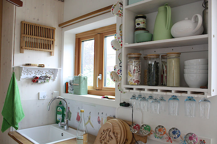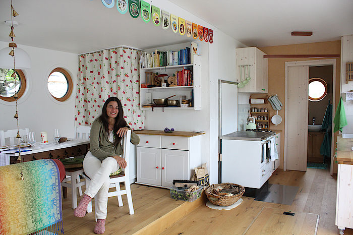Nur 31 Quadratmeter Wohnfläche, doch wie sagt man so schön: „Platz ist in der kleinsten Hütte“. Nach der Fertigstellung hat ihn die 53-Jährige eingerichtet, wie ein Puppenhaus. Ein schönes Dusch-Bad, eine moderne Küche, eine gemütliche Wohn-Essecke und ein bequemes Bett in der runden Nische.