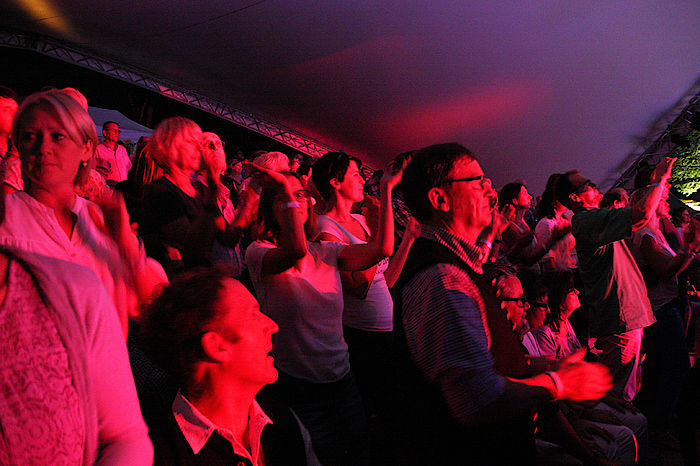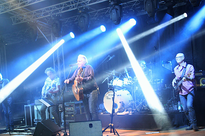 Wolfratshausen, 9.7.2017 – Die Pforte zum Flussfestival-Gelände war noch nicht geöffnet, da standen die Fans schon in einer langen Schlange an, um sich frühzeitig die besten Plätze zu sichern. Mit dem Gastauftritt des Austropop-Stars Rainhard Fendrich startete das diesjährige Flussfestival in Wolfratshausen. Zweifellos wird man am Ende nach zwei Festivalwochen resümieren, dass dieser Abend eines der größten Highlights war. Für die Fendrich-Fans auf jeden Fall, denn die verlangten ihrem Idol am Ende mehrere Zugaben ab, tanzten und sangen begeistert mit.