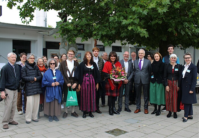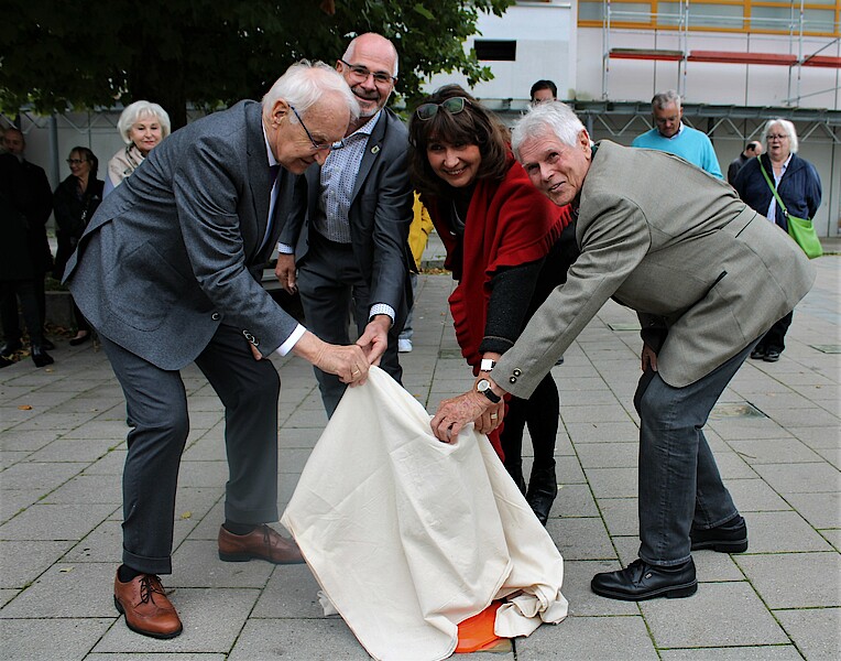 Wolfratshausen, 29.9.2022 - Vor zehn Jahren gründete sich der Verein „Bürger fürs Badehaus Waldram-Föhrenwald“ mit dem Ziel, am Kolpingplatz in Waldram einen lebendigen Erinnerungsort zu schaffen. Nach der 2018 erfolgten Eröffnung wurde das Begegnungs- und Dokumentationszentrum schnell überregional bekannt - Grund genug für eine besondere Auszeichnung auf dem Wolfratshauser „Walk of Fame“ vor der Loisachhalle.