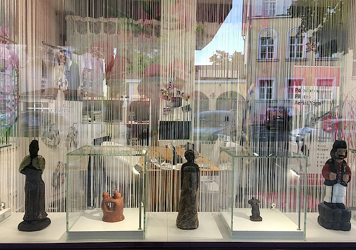 Im Schaufenster daneben hat der junge Stefan Vogger aus Geretsried einen guten Platz für seine Skulpturen aus Ton gefunden. Wenn es dann immer mehr dämmert sei jedem Besucher geraten, sich Richtung Sebastianisteg zu bewegen, wo Marianne Wirth-Grabow mit Grundschülern aus Wolfratshausen eine Installation mit einer endlos scheinenden Anzahl von Vogelhäuschen angebracht hat, die zu späterer Stunde mithilfe einer Lichtinstallation vom Wolfratshauser Kulturreferenten Alfred Fraas besonders beeindrucken.