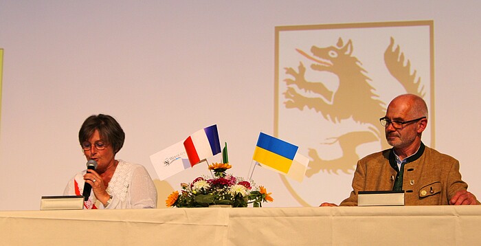 Wie schon beim Internationalen Flößertag hatte die Stadt für ihre Gäste einen Bayerischen Abend mit Tänzen des Trachtenvereins D’Loisachtaler und einem Jodelauftritt von Evelyn Hörschelmann organisiert. Dazwischen kündigte Moderator Ludwig Gollwitzer die Reden der Bürgermeister an. Den Anfang machte der Wolfratshauser Rathauschef Klaus Heilinglechner, der die Besucher gleich in fünf Sprachen begrüßte. „Wolfratshausen kann sich glücklich schätzen: Wir haben mehrere langjährige Freundschaften, zu Land und zu Wasser“, zeigte sich Heilinglechner begeistert. Florence Swistek, stellvertretende Bürgermeisterin aus Barbezieux, erinnerte an die weltweite Ausbreitung von Kriegen. „Mehr als jemals zuvor müssen wir uns bewusst machen, dass die Freundschaften, die im Rahmen der Städtepartnerschaften gepflegt werden, die Basis für ein vereintes und friedliches Europa bilden“, betonte sie.