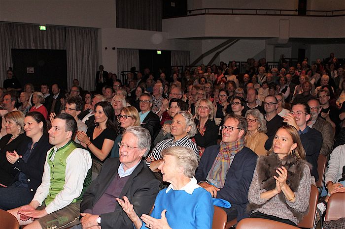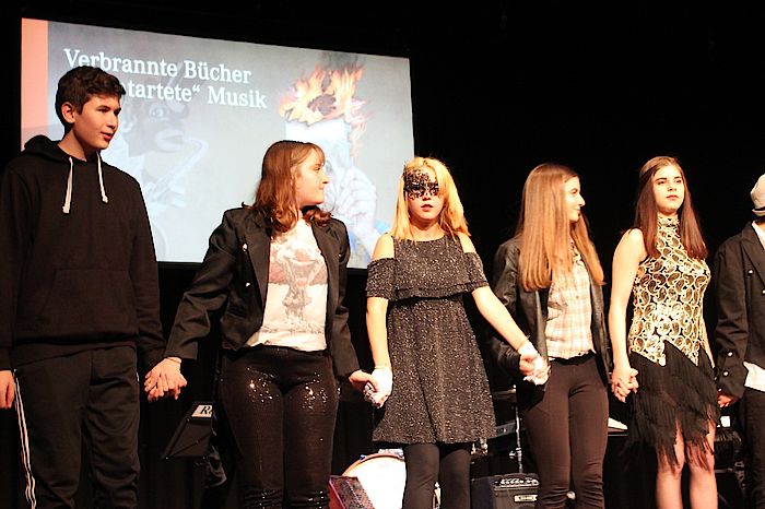 Am 10. Mai 1933 wurden in 22 deutschen Universitätsstädten die Werke jüdischer, marxistischer und pazifistischer Schriftsteller in der Öffentlichkeit verbrannt. Und nicht nur das: In Flammen gingen damals auch Notenpapiere der Komponisten Arnold Schönberg, Kurt Weill und Igor Strawinsky auf. Letzterer schuf mit dem „Feuervogel“ ein Ballett, das am Freitagabend den Gedenkabend eröffnete. Kinder der Grundschule Waldram hüpften in gelb-roten Kostümen über die Bühne und wurden dafür mit reichlich Applaus belohnt. Danach kündigten die beiden Moderatorinnen Assunta Tammelleo und Dr. Sybille Krafft mit erklärenden Einleitungen beziehungsweise Kurz-Interviews die folgenden Programmhöhepunkte an. So erfuhr das Publikum zum Beispiel von der in Icking lebenden Jazz-Legende Klaus Doldinger, das ihn schon als Kind die Musik amerikanischer Besatzungssoldaten faszinierte.