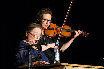 Die international renommierte Jazzerin Stephanie Lottermoser leitete dann mit der Moritat von Mackie Messer aus der von Kurt Weill komponierten Dreigroschenoper die zweite Halbzeit ein. Es folgten eine anspruchsvolle Zwölfton-Performance der Mittelschule Geretsried und ein pantomimischer Parforceritt des Ickinger Künstlers Peter Spielbauer, der mit seinem mitgebrachten Beil ein Buch zerhackte. Den Werken von Bertolt Brecht und Kurt Weill widmeten sich anschließend Ickinger Gymnasiasten und Wolfratshauser Mittelschüler. Ungewohnt ernst präsentierte sich danach die Schauspielerin Marianne Sägebrecht, die begleitet von der Geigerin Andrea Schumacher, Szenen aus dem dadaistischen Stück „Kaspar ist tot“ von Hans Arp vortrug. Als Geretsrieder Gymnasiasten und Realschüler gemeinsam mit ihren Lehrerinnen abschließend den Coco-Schumann-Evergreen „Bei mir bist du schön“ sangen, zeigte sich auch Schirmherr und Bürgermeister Klaus Heilinglechner ergriffen. „Ich bin überwältigt, dass Ihr den Gedenkabend so unterhaltsam präsentiert habt“, lobte er alle Beteiligten. Der Erlös der Veranstaltung kommt dem Erinnerungsort Badehaus zugute. In der Gedenkstätte am Waldramer Kolpingplatz wird unter anderem an das Schicksal von Überlebenden des Holocaust erinnert.