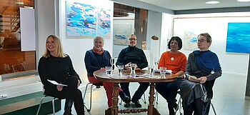 Wolfratshausen, 11.3.2024 (red) – Einen persönlichen Einblick in ihr Leben und ihren künstlerischen Werdegang gaben die Künstlerin Ursula-Maren Fitz (Glas und Bronze) und der Maler Heinz Stoewer beim Treff im Turm #2 – Künstlergespräch im Kunstturm Wolfratshausen mit achtsamer und interaktive Kunstbetrachtung einzelner Werke. Das kam sehr gut bei den Gästen an.