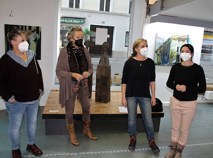 Wolfratshausen, 27.1.2022 – Eine beeindruckende Vielfalt an Kunstwerken ist bis zum 20. Februar im Kunstturm am Schwankl-Eck zu sehen. Schon bei der Vernissage der Ausstellung „Drei im Turm“ freuten sich die Künstlerinnen Birgit Berends-Wöhrl, Petra Jakob und Teresa Erhart über das große Interesse der Besucher.
