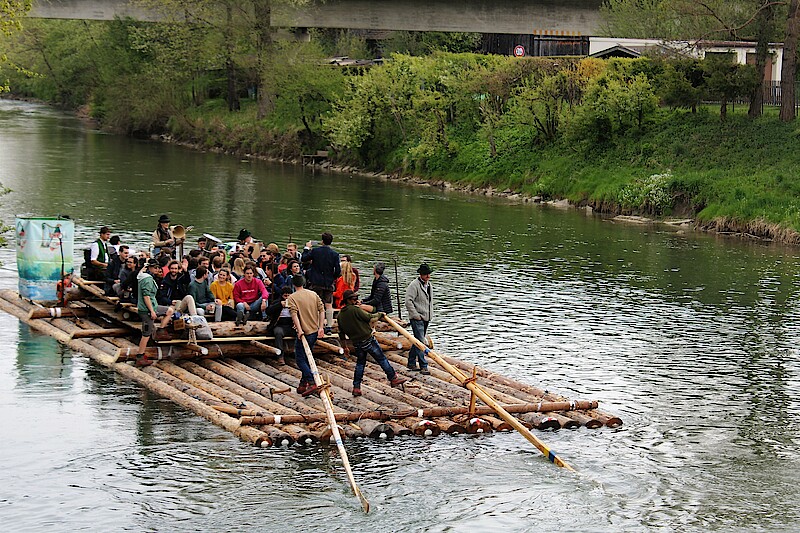 Wolfratshausen, 4.5.2022 – Als Josef Seitner am 10. September 2019 die letzte Passagierfloßfahrt der damaligen Saison veranstaltete, ahnte er noch nicht, dass der Betrieb bis 2022 ruhen wird. Umso größer war seine Freude, am Samstag an der Weidacher Floßlände wieder eine internationale Touristengruppe begrüßen zu dürfen.