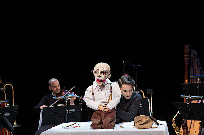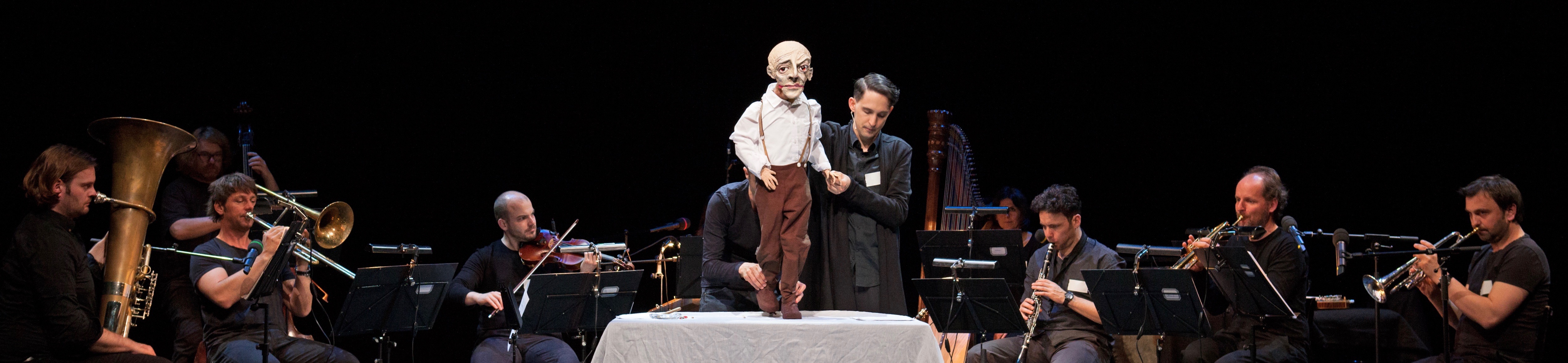 Der meisterhafte Puppenspieler Nikolaus Habjan und die gefeierte Musicbanda Franui mit Osttiroler Wurzeln benötigen nur wenig, um einen besonderen Musiktheaterabend auf die Bühne zu bringen: 1 Tisch, 1 Koffer, 2 Puppen, 6 Blasinstrumente, sowie Geige, Kontrabass, Hackbrett und Harfe.