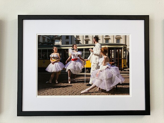 Bei einem Rundgang durch die Räume im Schwankl-Eck tun sich in der Tat Fernweh-Gefühle auf. Auf den Bildern von Gaby Breitenbach und Ralf Steinberger sieht man Menschen in Gassen unbeschwert tanzen. Da baden andere im blauen Mittelmeer, da vergnügen sich Dritte in der Abendstimmung in Venedig und, ja auch das gibt es hoffentlich bald wieder – da genießen Menschen am Imbissstand in Corno (Lombardei) ohne Abstand und Maskenpflicht den kleinen Nacht-Snack zu später Stunde. Es tut in diesen Zeiten gut, dass die Fotografien dieser Ausstellung das Positive herausstellen und nicht am Sozialen und der Gesellschaft nörgeln. Über Jahre hätten sie diese Motive fotografiert, sagen Breitenbach und Steinberger, die seit vielen Jahren in Italien am Lago Maggiore leben. Die Motive zu finden, die höchst Skurriles aus der alltäglichen Normalität zeigen, kostet Zeit, den richtigen Blick und Geduld.