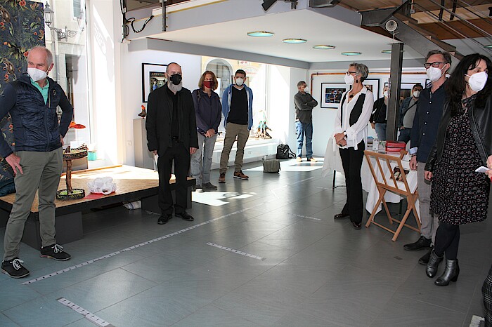 Bürgermeister Klaus Heilinglechner und Alfred Fraas bedankten sich auf der Vernissage mit wenigen namentlich registrierten Gästen, dass mit dieser Ausstellung „ein Spross der Kultur in Wolfratshausen wieder aufkeimen kann“.