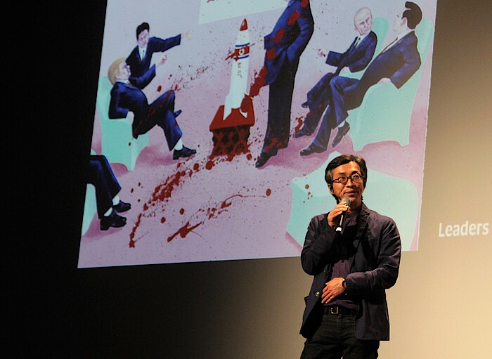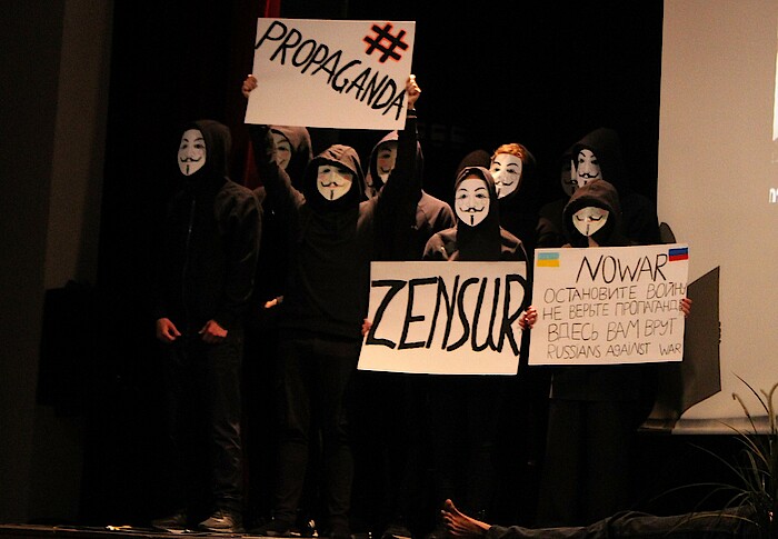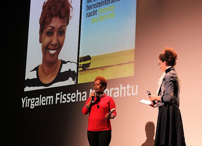 Die zehnte Klasse der Wolfratshauser Isar-Loisach-Realschule stellte daraufhin mit Videoeinspielungen die bereits 1921 in England gegründete Schriftstellervereinigung PEN vor. Im Rahmen des Programms „Writers in Exile“ vergibt die Organisation Stipendien, damit verfolgte Autoren im Ausland leben und schreiben können. Dazu gehört auch Yirgalem Fisseha Mebrahtu aus Eritrea. Sie berichtete in ihrem Kurzbeitrag über ihre schmerzhaften Gefängnisaufenthalte in dem erst seit 1993 unabhängigen afrikanischen Staat. Nicht minder bedrückend sind die Verhältnisse in Nordkorea, das in einer vom Journalistenverband herausgegebenen Rangliste der Pressefreiheit den 180. und letzten Platz belegt. Jae-Hyun Yo, ein mittlerweile in Bairawies lebender Freund des nordkoreanischen Künstlers Sun Mu, berichtete über dessen Flucht aus der Diktatur. Nach einem Tanzbeitrag der siebten Klasse der Wolfratshauser Mittelschule und einem von Pauline Bittner geführten Interview mit der iranischen Exilautorin Ayeda Alavie gönnten die Veranstalter den Besuchern eine halbstündige Pause, um das Gehörte und Gesehene zu verarbeiten.