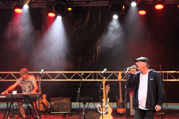 Wolfratshausen, 16.7.2025 - Um die Innenstadt kulturell zu beleben, initiierte Kulturmanager Andreas Kutter vor zwei Jahren eine Straßenmusik-Konzertreihe. Nun stellten einige dieser Künstler ihr Können erstmals auf der Fluss-Festival-Bühne unter Beweis. Für den Liedermacher Willi Sommerwerk war es gar der fulminante Abschluss seiner vielen Live-Auftritte.