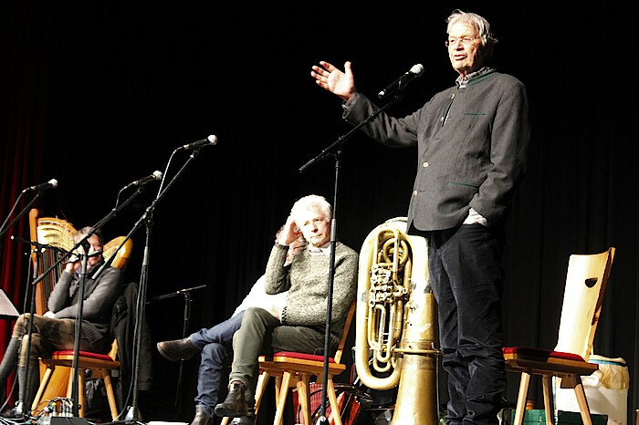 „Das letzte Mal als wir in Wolfratshausen waren, war die Loisachhalle noch beheizt“, erinnerte sich der zunächst frierende Michael Well an einen Auftritt vor 13 Jahren. Diesmal gelang es dem Kulturverein Isar-Loisach (KIL), die Mitglieder der 2012 aufgelösten Biermösl Blosn zusammen mit Gerhard Polt in die Loisachstadt zu locken. Die nach dem Abzug aller Kosten verbleibenden Einnahmen aus dem Kartenverkauf kommen der nach wie vor von der Schließung bedrohten Kulturbühne Hinterhalt in Gelting zugute. Die Künstler bezeichneten diesen Veranstaltungsort und den Erinnerungsort Badehaus in Waldram als „zwei Leuchtpfade in der Region“, die unbedingt erhalten werden müssen.