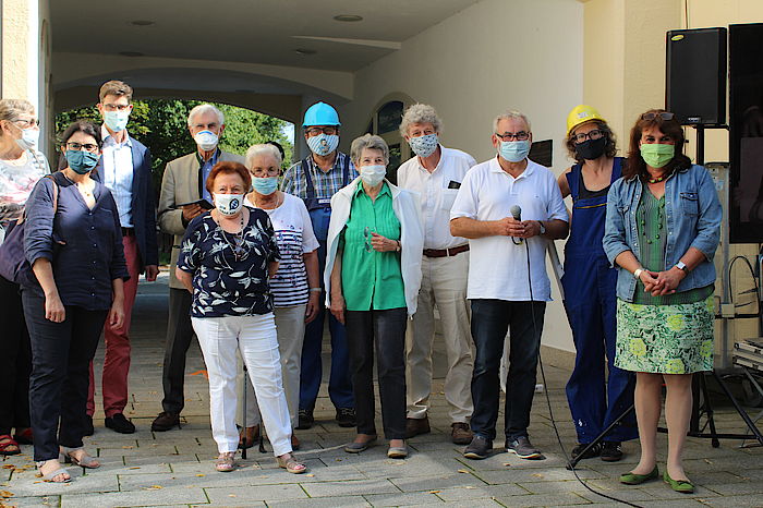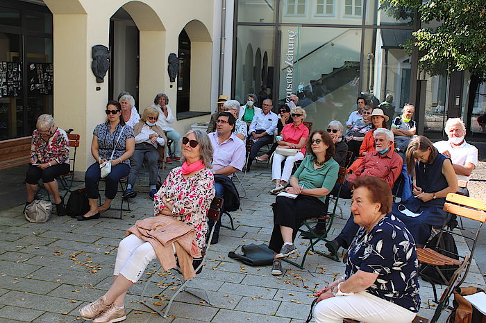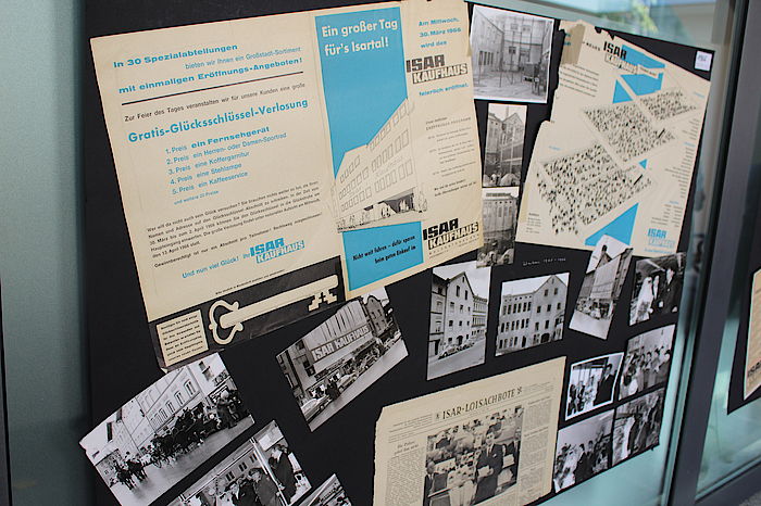 Um die coronabedingten Sicherheitsabstände einhalten zu können, stellte der Historische Verein im Innenhof des Rathauses Stühle auf. Entlang der Außenwand des Bürgerbüros hingen unzählige Schwarz-Weiß-Fotos, die an die bewegte Geschichte des vor acht Jahren geschlossenen Isar-Kaufhauses am Untermarkt erinnerten. Zusammengestellt haben sie Gründer Otto-Ernst Holthaus und sein Sohn Frederik, der die Geretsrieder Filiale führt. Beide waren Gast von drei Veranstaltungen, zu denen der Historische Verein anlässlich des Tages des offenen Denkmals eingeladen hatte. „Der heutige Spatenstich fällt aus, wir rufen jetzt das Jahr des offenen Denkmals aus“, gab sich Ludwig Gollwitzer trotzig.