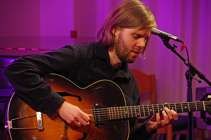 Seit acht Jahren treten Alma Naidu und Philipp Schiepek gemeinsam auf, allerdings in loser Folge. Zuletzt vor einem Jahr, erzählen sie dem Publikum. „Unser Repertoire ist im Grunde das Gleiche, aber jeden Abend passiert etwas anderes“, so Schiepek. Schiepeks Gitarrenspiel auf der Jazzgitarre ist so virtuos und komplex im Klang sowie in der Technik, dass man sich gut vorstellen kann, dass er ein und den selben Jazzstandard in unzähligen Klangvariationen interpretieren kann. Und genau das ist auch die Intension des studierten Jazzmusikers, der in Dinkelsbühl lebt und komponiert. Seine Musik ist im Rundfunk zu hören. Sein Schwerpunkt sind Interpretationen für die Sologitarre. Er spielt neben seinen Auftritten auf Jazzfestivals und Jazztagen in ganz Deutschland.