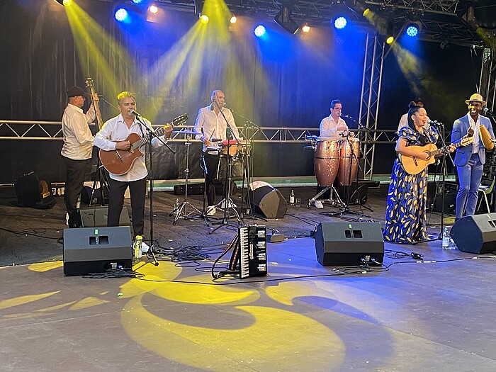 Temperaturmäßig kam es freilich nicht an das kubanische Klima hin. Wer schon mal dort war, weiß, dass es in den Straßen von Havanna oder Holguin die ganze Nacht heiße 40 Grad hat. Dort pulsiert das Leben auf den Straßen, dort spielen an allen Ecken Son- und Salsa-Gruppen. Weltberühmt ist das legendäre „Chan Chan“ aus dem Musikprojekt „Buena Vista Social Club", das an den afrokubanischen Kulturverein „Club Social“ im Stadtviertel Buena Vista in Havanna vor der Kubanischen Revolution erinnerte. Es dauerte auch nicht lange, denn schon zu Beginn spielten die Kubaner dieses emotional ergreifende Lied fürs Wolfratshauser Publikum. Der Son und Salsa ist berühmt für seinen Hüftschwung-Rhythmus und seiner intensiven Seele. Es liegt pure Anmut sowohl in der Musik als auch im Tanz.