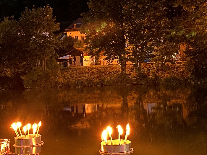 Wolfratshausen, 16.7.2025 – Erstmals in Wolfratshausen zu Gast: Die international renommierte kubanische Musikerin Yarima Blanco mit ihrer sechsköpfigen Gruppe. Yarima Blanco zählt zu der weltbesten Tres-Spielerin (dreiseitiges Saiteninstrument aus Kuba). Sie kamen genau zum richtigen Zeitpunkt aufs Flussfestival. Es war ein warmer Sommerabend, mit einem begeisterten Publikum und karibischer Stimmung am Flussufer mit schwimmenden Kerzen.