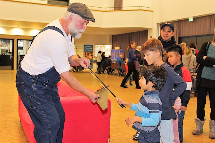 Seltsame Instrumente verteilte der Geschichtenerzähler Michael Kluthe. Dass die Kinder beim Musizieren mit einer Säge nicht immer den richtigen Ton trafen, störte an diesem Tag niemanden. Noch lauter waren da nur die Trommeln, die die Sängerin Claudia Sommer im Waldramer Kinderhort basteln ließ. Auch beim Mitmachkonzert von Erich Mayer – besser bekannt als Erich der Koch – sowie bei der Kinderperformance der Tanzschule Müller schnellte der Geräuschpegel nach oben. Davon unbeeindruckt zeigten sich die Jungs und Mädchen, die an den Tisch des Schachclubs gegeneinander antraten.