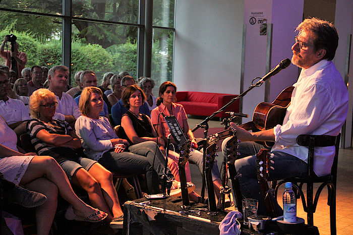 „Des bin i“, stellte Michael Fitz sich im neuen Programm vor. Der Oberbayer lebt sein drei Jahren in Niederbayern und ist seit 28 Jahren mit einer Passauerin leiert. Mit einem gewissen „Mischmasch-Dialekt“ beschreibt er sein Tun und Handeln in Liedern und Geschichten. Fitz hat seine eigene Willkommenskultur. „Komm doch nei zu mir“ singt er einladend im Lied „Da Bsuach“ denn, so seine Meinung, es sei nicht mehr alles gut in Bayern. Ein Seitenhieb auf die aktuellen Geschehnisse der bayerischen Politik. Ansonsten ist der Michael Fitz unpolitisch, eher selbstoptimiert – in der Beziehung, im menschlichen Verhalten, in seiner Korrektheit. Alles „mit kalkulierbarem Risiko“. Michael Fitz hat sich in den letzten drei Jahren hauptsächlich ins Musikgeschäft zurückgezogen. Mit fünf Gitarren und einem alten Barhocker ist er bundesweit „mit dem Auto unterwegs“. Er hat seine eigenen „Autofahrer-Touretten“ parat. Viel Witz, viel Selbstironie, ein wenig Kritik am Alltäglichen, und sau gute Musik. Damit endete die diesjährige Bergwaldbühnenreihe.