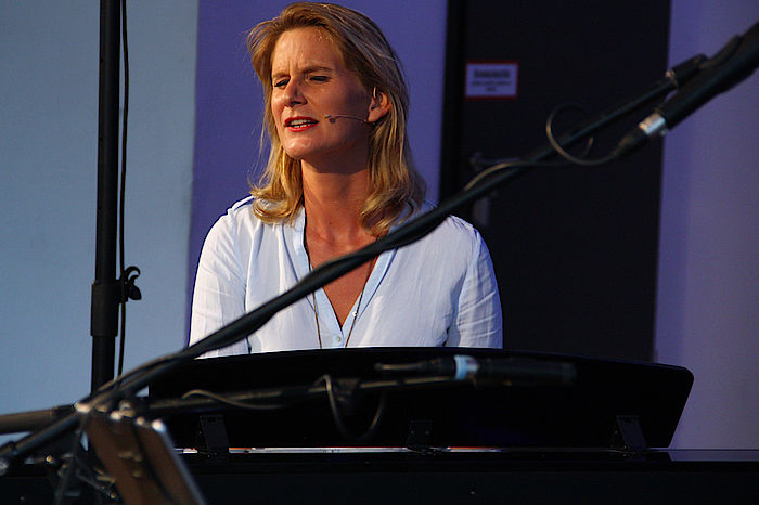 Die Liedermacherin und Pianistin Lucy van Kuhl, alias Corinna Fuhrmann, stellte sich als „hünenhaft hoch Aufgeschossene“ dem Wolfratshauser Publikum musikalisch vor, und nimmt sich in ihren Liedern gerne selbst aufs Korn. Sie erzählt darin die kleinen Peinlichkeiten ihres Künstleralltags: Zum Beispiel „FFK auf Deck elf“, während einer Kreuzfahrt. Sie habe sich versehentlich auf dem Glasdach des Speisesaals gesonnt, erzählte sie am Rande. Solche und andere kleine Malheurechen verpackt van Kuhl musikalisch, sehr entspannt und amüsant zum Zuhören. Apropos Speisesaal. „Zu viel Auswahl“, heißt ein rhythmisch flotter Song um das „Fressverhalten der Touristen auf den Flatrat-Frachtern“. Die lang gewachsene Blondine wünscht sich dagegen lieber „Küsse ohne Kaviar“ und „Liebe ohne Lachstatar“.
