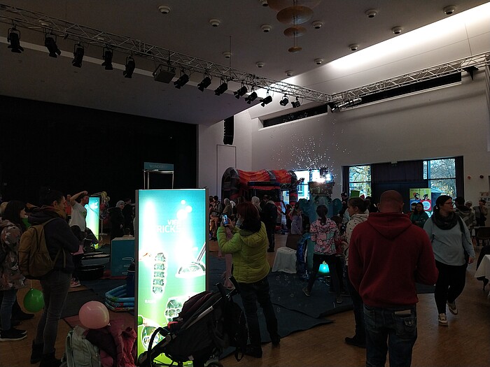 Am Sonntag, den 12.11.2023, war beim Familienfest wieder für Groß und Klein in der Loisachhalle viel geboten. Mehrere hundert Kinder und Erwachsene konnten tolle Mitmach-Attraktionen genießen. Es gab eine Kletterwand, Hüpfburg, Bastel-, Mal- und Tanzaktionen, Schachspielmöglichkeiten und eine Seifenblasenwerkstatt. Man konnte Riesenschnecken kennenlernen und eigene Gewürze mischen. Kunterbuntes Treiben mit vielen begeisterten Kinderaugen.