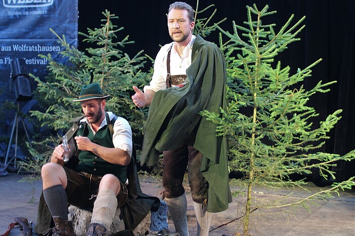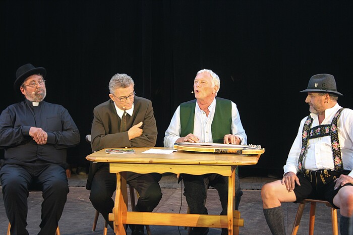 84 Jahre später beriet der Schlierseer Bürgermeister (Franz Foitzik) mit dem Pfarrer (Ludwig Gollwitzer), dem Trachtenvereinsvorsitzenden (Kurt Züge), dem Kaffeehausbesitzer Sachs (Hermann Paetzmann) sowie einem Zitherspieler (Josef Brustmann) über die Pflege des zur „Kultstätte“ gewordenen Grab des Wilderers. „Da Jennerwein is für Bayern dees, was da Buffalo Bill für d’ Ami is“, plädierte Sachs für eine Fortsetzung der Heldenverehrung. Der Bürgermeister war da anderer Ansicht: „Mir Hinterwäldler scheißn wega an’m Grab von an’m Wuiderer umanand, den wo ’s vor 84 Jahr daschossn haben“, ärgerte er sich. Der Musikkabarettist Josef Brustmann sang dazu die Liedzeilen: „Jetzt is er tot und trotzdem lebt er weida“. Es folgten Rückblicke in die letzten Lebensjahre des Wilderers sowie dramatische Jagdszenen in den Wäldern. Am Ende gab’s tosenden Applaus für die Schauspieler und Regisseurin Melanie Tobian, die das Volksstück flott inszeniert hatte.